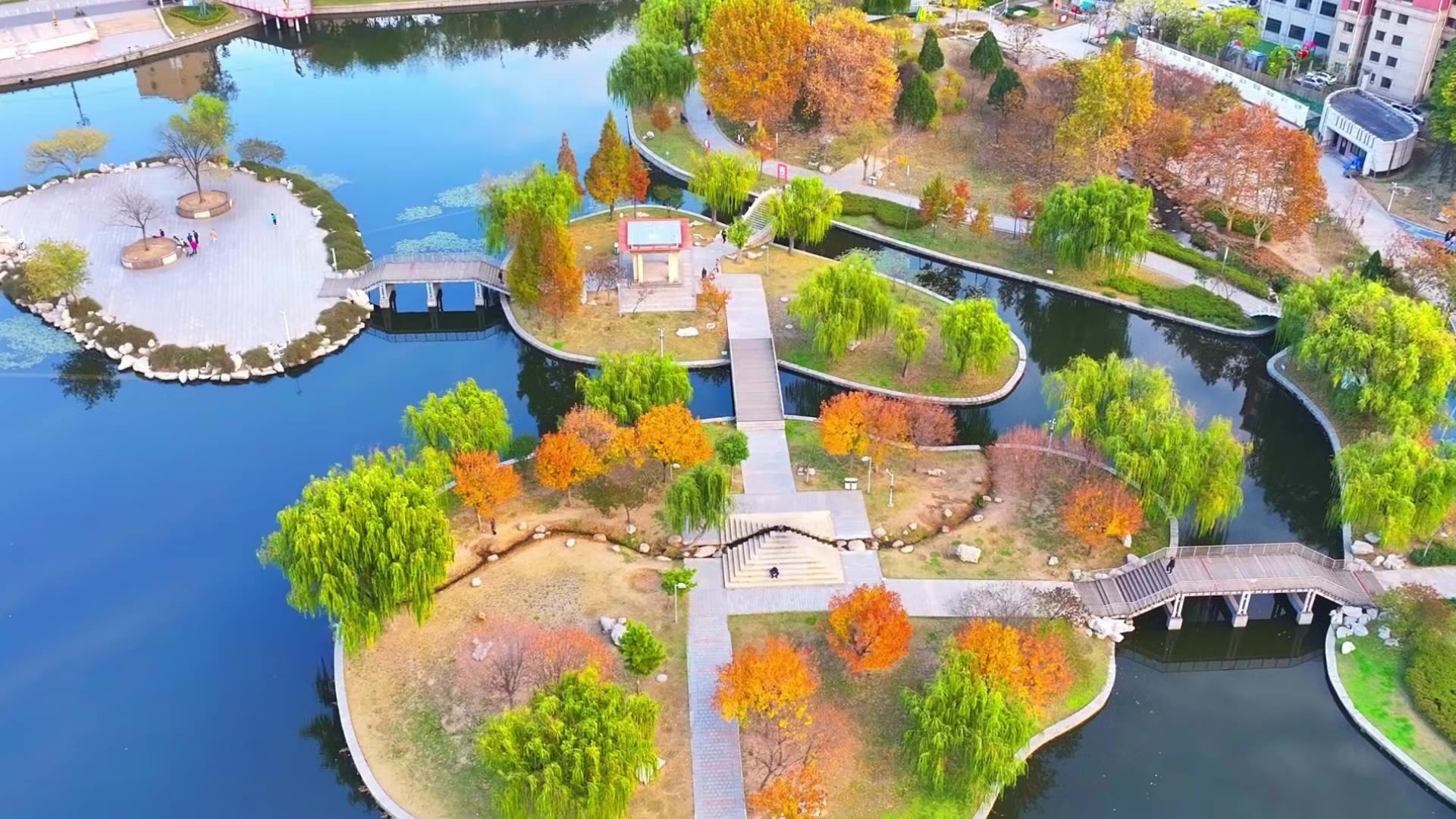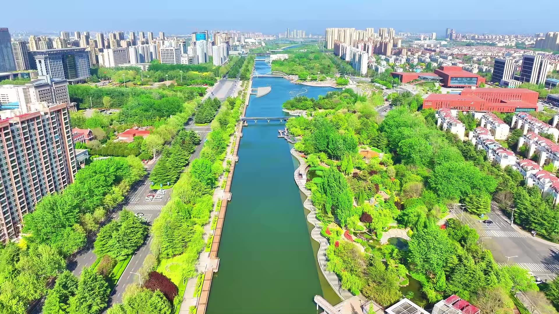 航拍青島膠州市:三里河公園的四季更迭