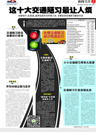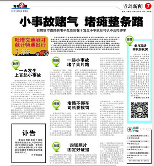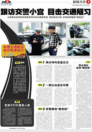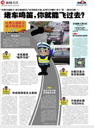 4月27日,市交警支隊、青島新聞網(wǎng)、青島早報聯(lián)合發(fā)起了“吐槽交通陋習獻計暢通出行”活動,截至昨天下午2時,參與量超過25萬人次,超過1萬人參與投票調(diào)查?!薄 ?交警宮磊認為,現(xiàn)在市區(qū)很多路段的擁堵,是因為司機隨意變更車道、尤其是在路口加塞導致的。[詳情]