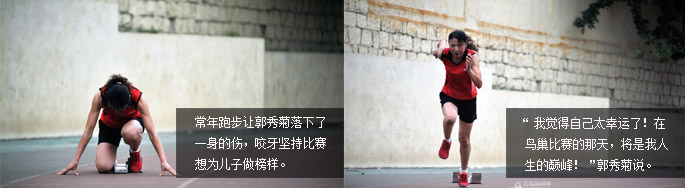 藥店算是郭秀菊經(jīng)常光顧的地方?!吧狭四昙o(jì),一旦運(yùn)動(dòng)強(qiáng)度大了,很容易拉傷,家里就得常年備著膏藥、活絡(luò)油?!惫憔照f道。很多人都曾經(jīng)勸說郭秀菊離開賽場,但是郭秀菊的兒子恰好相反,他全力支持自己的媽媽重返賽場,也愿意陪同媽媽去鳥巢比賽。 “我想,我的堅(jiān)持對我兒子和很多熱愛田徑的年輕人來說,算是一種激勵(lì)。我想成為他們心中的榜樣?!?BR> 奧運(yùn)冠軍王軍霞是郭秀菊一直以來的偶像,王軍霞身披國旗站上冠軍領(lǐng)獎(jiǎng)臺的畫面常常讓郭秀菊無比激動(dòng)。“多少職業(yè)運(yùn)動(dòng)員跑了一輩子也沒能參加一屆世錦賽,我覺得自己太幸運(yùn)了!在鳥巢比賽的那天,將是我人生的巔峰!” [詳情]