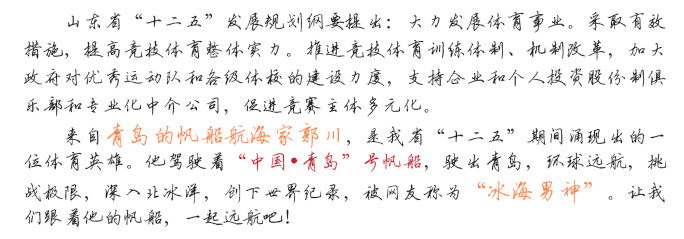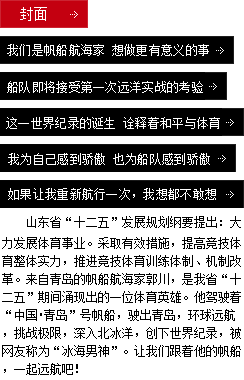 這是世界航海史上第一次由一位中國船長帶領(lǐng)5名國際船員創(chuàng)造的世界紀(jì)錄,也是一個(gè)由中國船長領(lǐng)軍,中國職業(yè)項(xiàng)目經(jīng)理人擔(dān)任管理,中國船長創(chuàng)造新的航海世界紀(jì)錄?!?a target="_blank" class="cYellow" >[詳情]