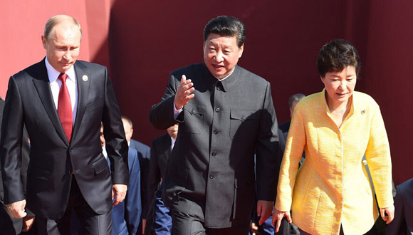 習(xí)近平抗戰(zhàn)勝利紀(jì)念大會(huì)講話顯示多重深意9月3日,紀(jì)念中國(guó)人民抗日戰(zhàn)爭(zhēng)暨世界反法西斯戰(zhàn)爭(zhēng)勝利70周年大會(huì)在北京天安門廣場(chǎng)隆重舉行。共同”“綜合”“合作”“可持續(xù)”是中國(guó)的世界安全觀的四大戰(zhàn)略維度,共建、共享、共贏則是這一安全觀的三個(gè)戰(zhàn)略支點(diǎn)。 [詳情] 大閱兵:勝利不朽 中華民族榮光傾情綻放70年前的苦難輝煌,中華民族的勝利榮光,今天在天安門廣場(chǎng)傾情綻放。 此刻,北京東長(zhǎng)安街上,三軍列陣,鐵甲傲立。華北地區(qū)8?jìng)€(gè)軍用機(jī)場(chǎng),一架架戰(zhàn)鷹振翅待飛…… [詳情] |