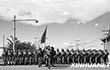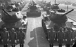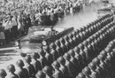 1959年國慶10周年閱兵式,毛澤東陪同蘇聯(lián)領(lǐng)導(dǎo)人赫魯曉夫和蘇斯洛夫以及來自十多個(gè)社會(huì)主義國家和六十多個(gè)國外共產(chǎn)黨的領(lǐng)導(dǎo)人登上了天安門城樓 。1959年的閱兵規(guī)模比以往大,準(zhǔn)備工作也比較早。當(dāng)時(shí),天安門廣場(chǎng)已擴(kuò)建一新。整個(gè)廣場(chǎng)較五周年國慶時(shí)擴(kuò)大了兩倍半,達(dá)40萬平方米。 |