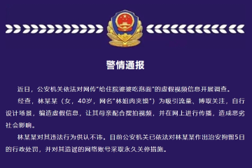 聊城警方:編造虛假信息,“給住院婆婆吃泡面”視頻博主被拘