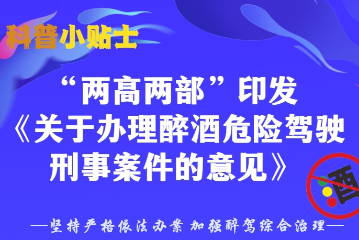 科普小貼士|“兩高兩部”引發(fā)印發(fā)《關(guān)于辦理醉酒危險(xiǎn)駕駛刑事案件的意見(jiàn)》,帶你解讀