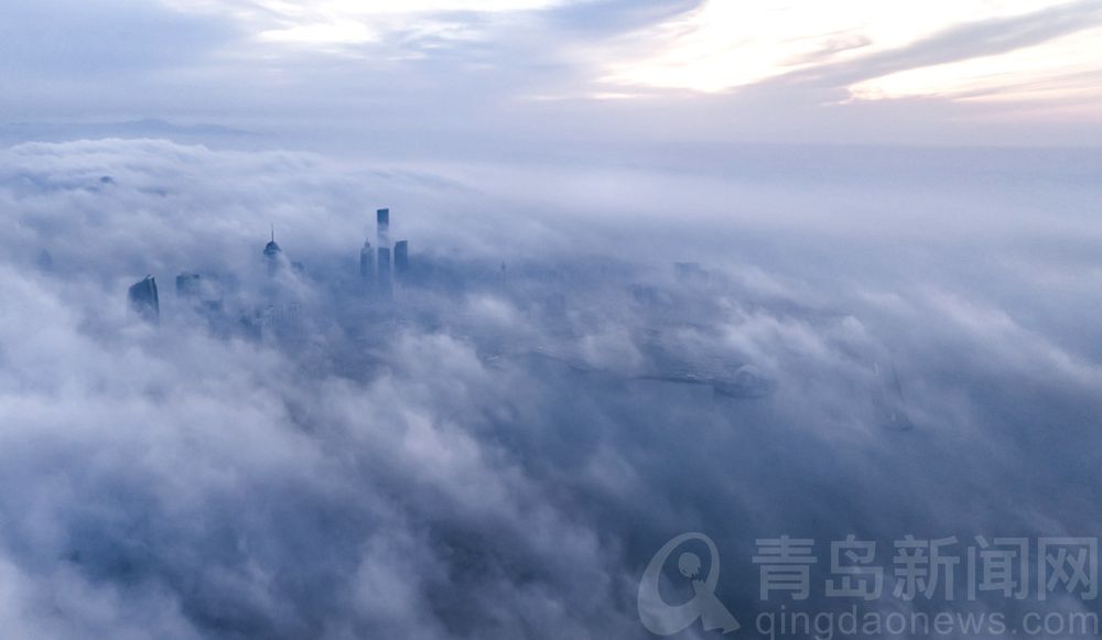 【大片】青島東部沿海出現(xiàn)平流霧 浮山灣畔又見海市蜃樓