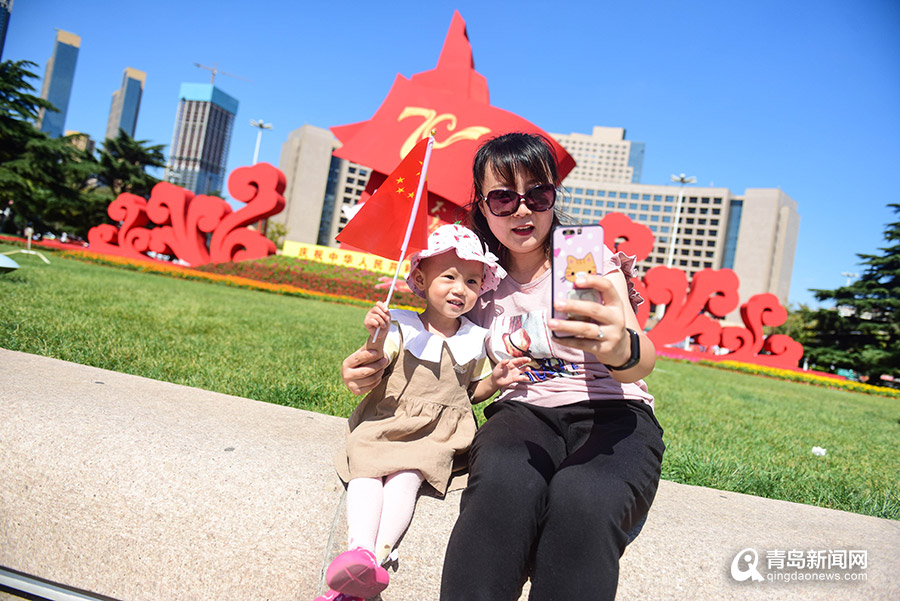 高清:國旗飄揚花團錦簇 青島街頭換上國慶靚裝