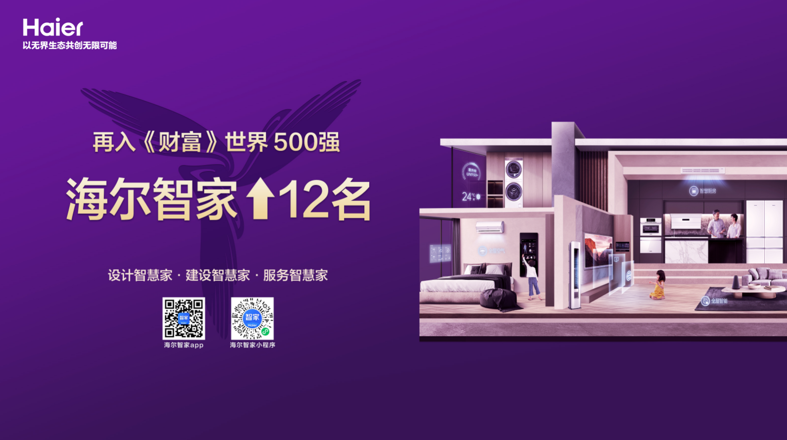 上升12名!海爾集團(tuán)子公司:海爾智家再入《財(cái)富》500強(qiáng)
