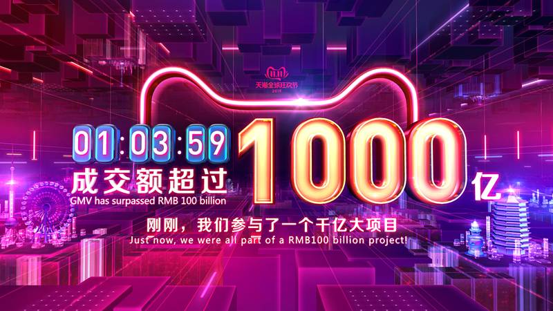 天貓雙11新紀(jì)錄1小時3分59秒 1000億來得太快