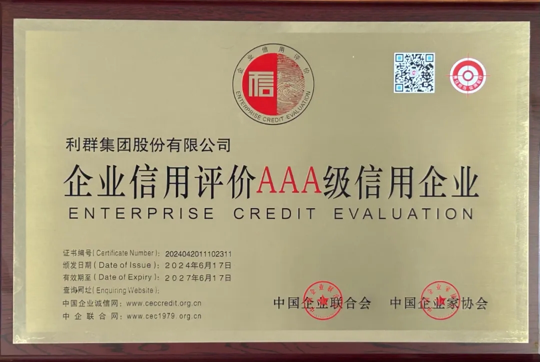 利群集團(tuán)股份有限公司獲評(píng)“企業(yè)信用評(píng)價(jià)3A級(jí)信用企業(yè)”