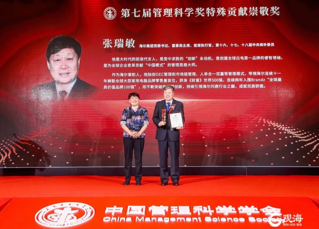 張瑞敏被授予第七屆管理科學(xué)特殊貢獻崇敬獎!