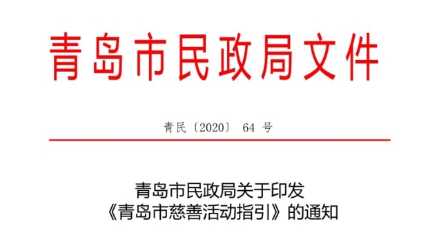 青島市民政局印發(fā)《青島市慈善活動(dòng)指引》,這也是國(guó)內(nèi)首個(gè)指導(dǎo)慈善活動(dòng)實(shí)施的標(biāo)準(zhǔn)化文件。