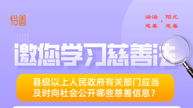 怡善·慈善法規(guī)|邀您學(xué)習(xí)慈善法-縣級(jí)以上人民政府有關(guān)部門(mén)應(yīng)當(dāng)及時(shí)向社會(huì)公開(kāi)哪些慈善信息?
