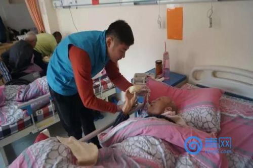 怡善義工90度彎腰給老人喂飯