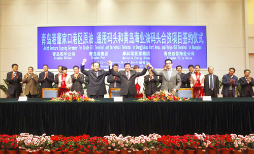 | 青島港董家口港區(qū)原油、通用碼頭和黃島海業(yè)油碼頭合資項目簽約儀式隆重舉行 |