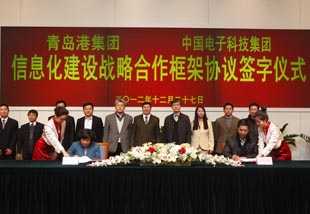 | 青島港與中國電子科技集團信息化建設(shè)戰(zhàn)略合作框架協(xié)議舉行簽約儀式 |