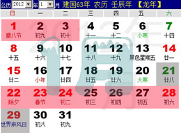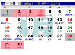 2012年放假安排表