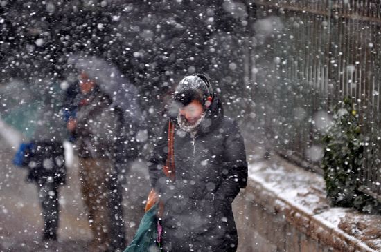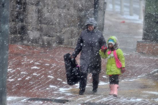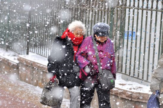 青島市區(qū)雪花飄飛 真正意義上的今冬首雪