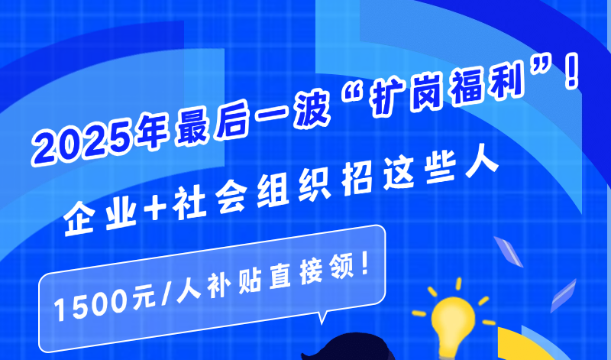 2025年最后一波“擴崗福利”?企業(yè)+社會組織招這些人,1500元/人補貼直接領(lǐng)!