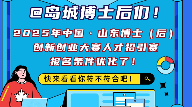 @島城博士后們!2025年中國(guó)·山東博士(后)創(chuàng)新創(chuàng)業(yè)大賽人才招引賽報(bào)名條件優(yōu)化了!快來(lái)看看你符不符合吧!
