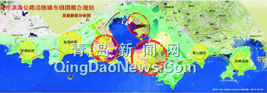 兩點(diǎn)一環(huán):以膠州灣東岸為主城,西岸為輔城,環(huán)膠州灣沿海為發(fā)展組團(tuán),形成“兩點(diǎn)一環(huán)”的發(fā)展態(tài)勢(shì)。 |
